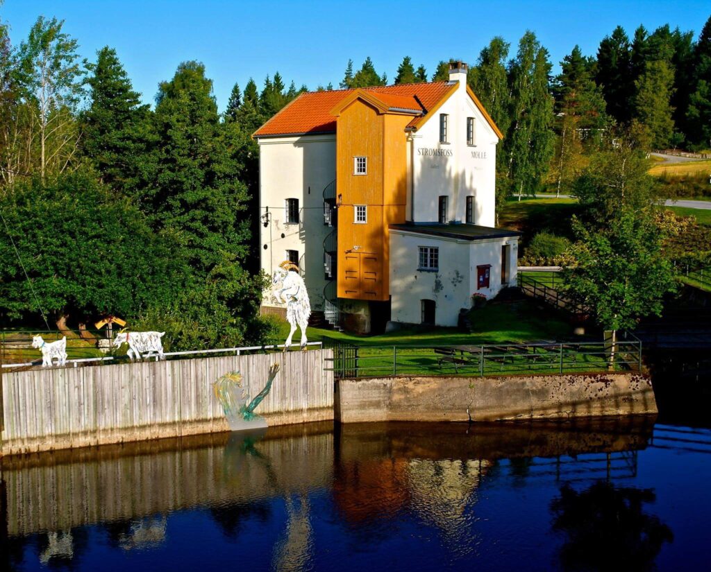 About one hour later we will debark and get picked up by the veteran bus, which will take us back to Strømsfoss, and the artexhibition in the old mill.Strømsfoss mill is a typical village mill, which was active from 1897 – 1966. The mill has its own powerstation in the lower basement. In 1955 Strømsfoss was established as a national museum for mills. Elisabeth Due will receive us at Galleri Strømsfoss, at the mill.